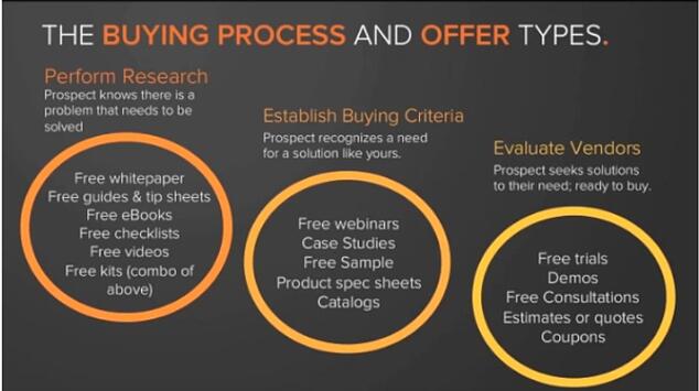 According to Hubspot here's how your offer types change as the buying process progresses.
